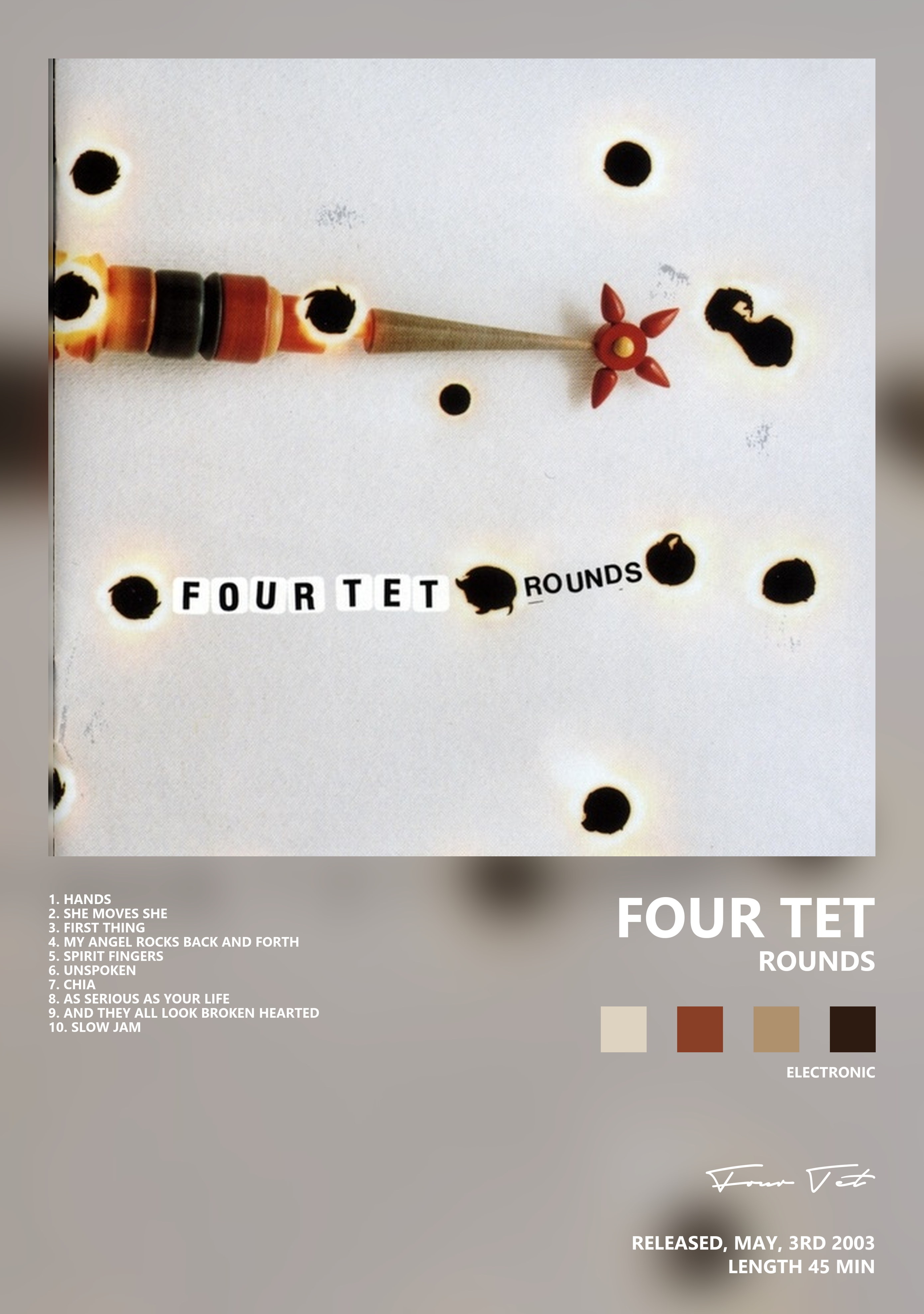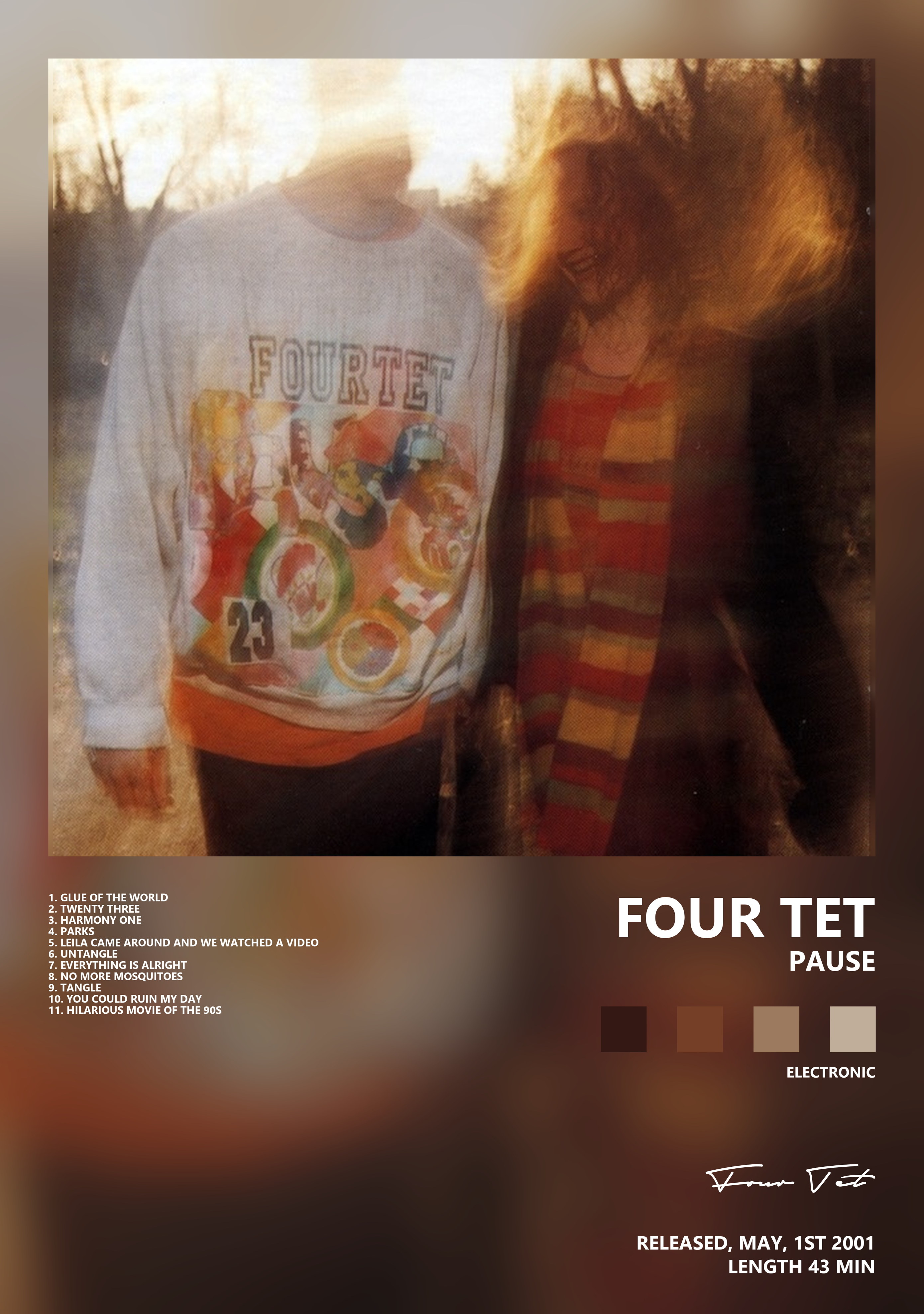 Four Tet — исполнитель, связанный с Великобритания, активный в 1977–н.в.. Чаще всего с этим именем связывают жанры электроника, даунтемпо, Idm.