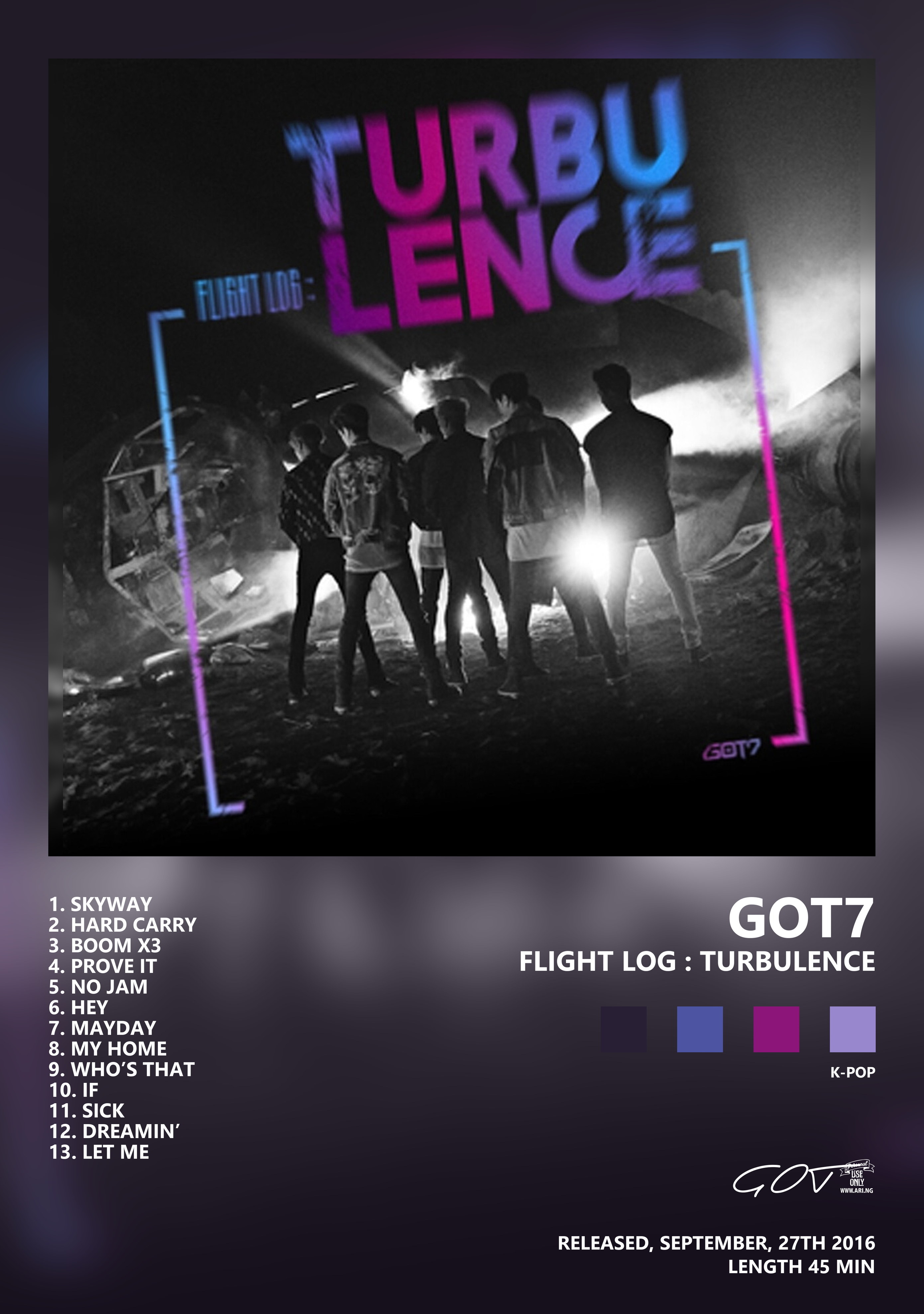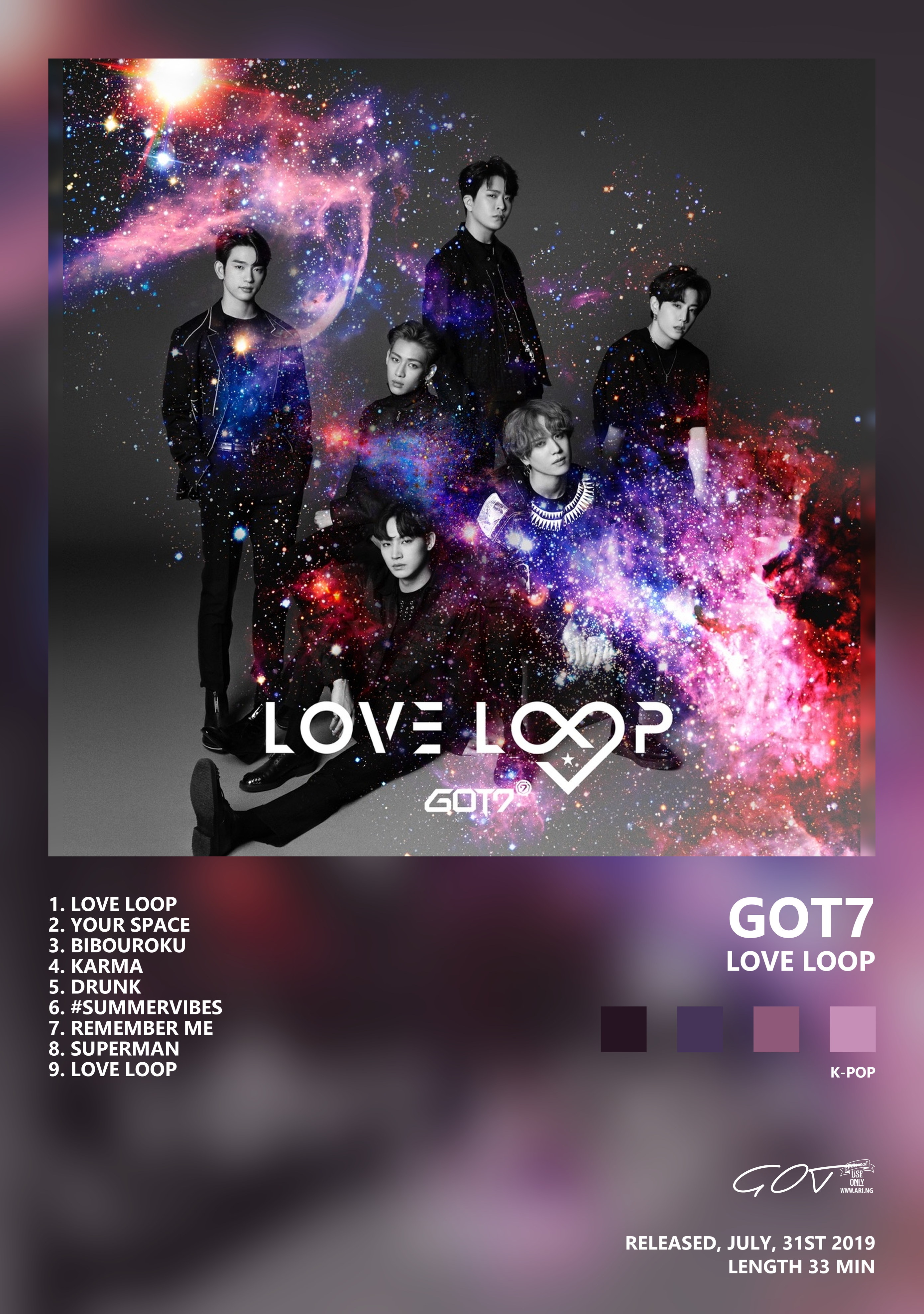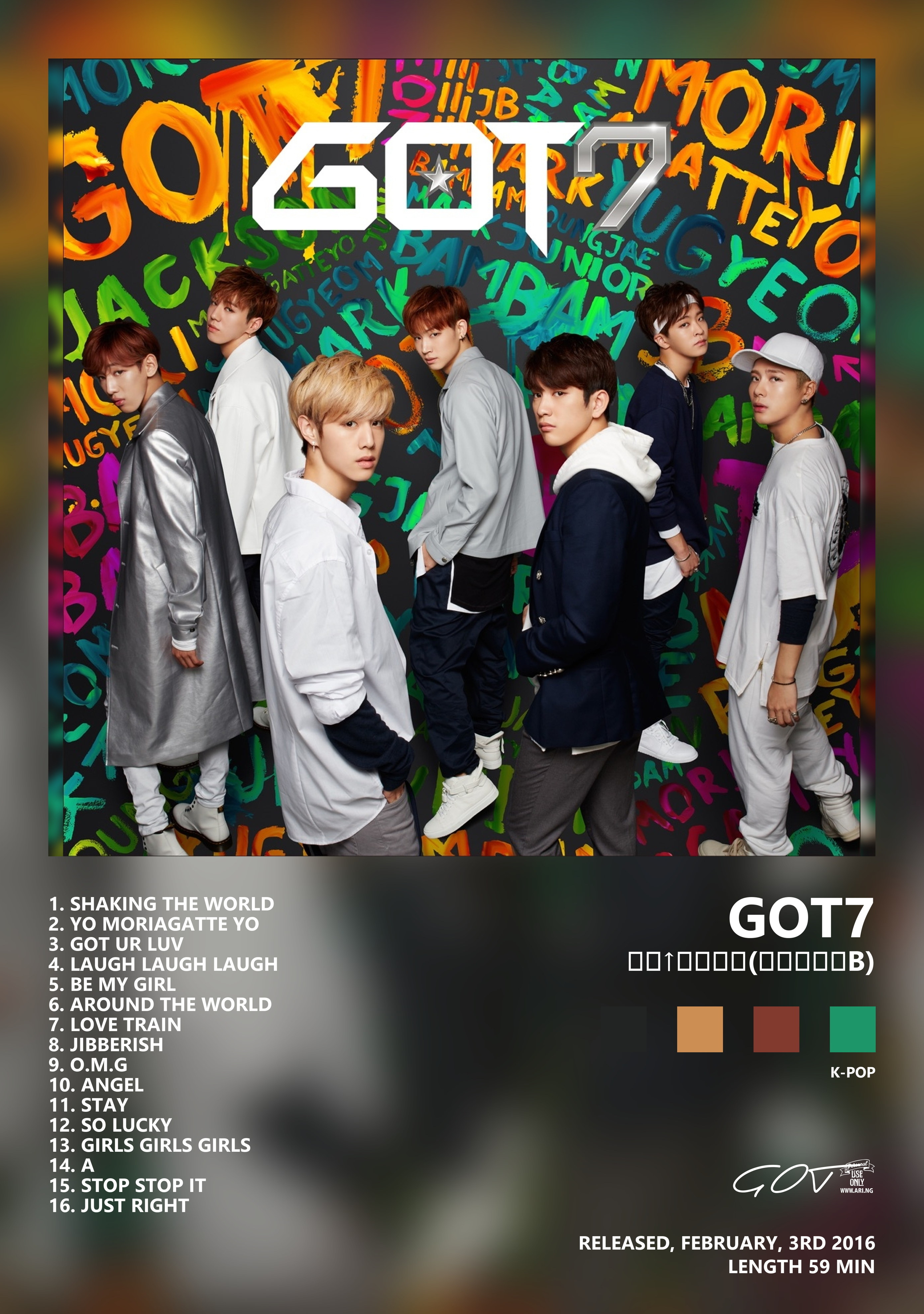 GOT7 — группа, связанный с Республика Корея, активный в 2014–н.в.. Чаще всего с этим именем связывают жанры кей-поп, 3rd gen k-Pop, Boy band.